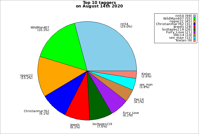 | Top 10 taggers on August 14th 2020 | ||