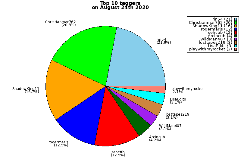 | Top 10 taggers on August 24th 2020 | ||