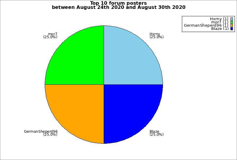 | Top 10 forum posters between August 24th 2020 and August 30th 2020 | ||