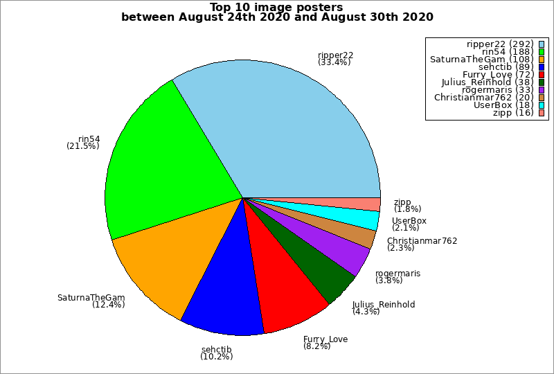 | Top 10 image posters between August 24th 2020 and August 30th 2020 | ||