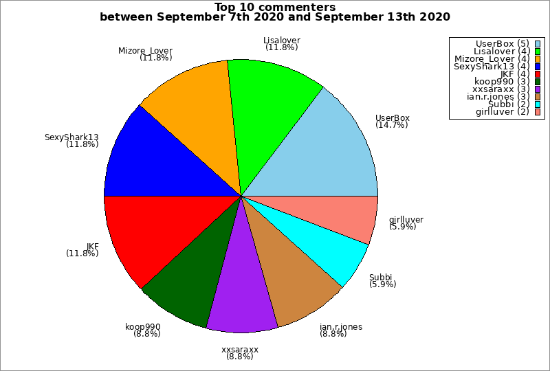 | Top 10 commenters between September 7th 2020 and September 13th 2020 | ||