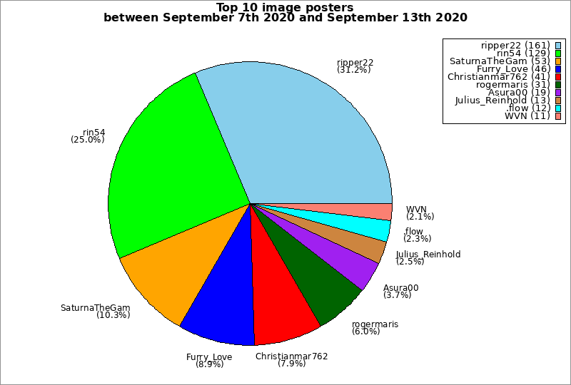| Top 10 image posters between September 7th 2020 and September 13th 2020 | ||