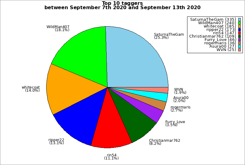 | Top 10 taggers between September 7th 2020 and September 13th 2020 | ||