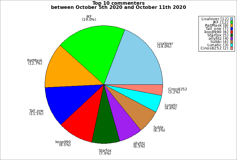 | Top 10 commenters between October 5th 2020 and October 11th 2020 | ||