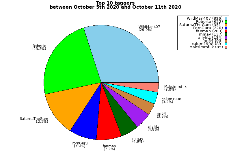 | Top 10 taggers between October 5th 2020 and October 11th 2020 | ||
