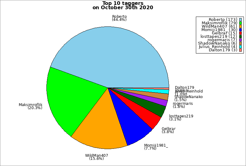 | Top 10 taggers on October 30th 2020 | ||
