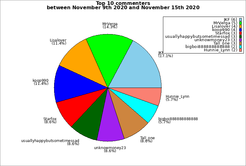 | Top 10 commenters between November 9th 2020 and November 15th 2020 | ||