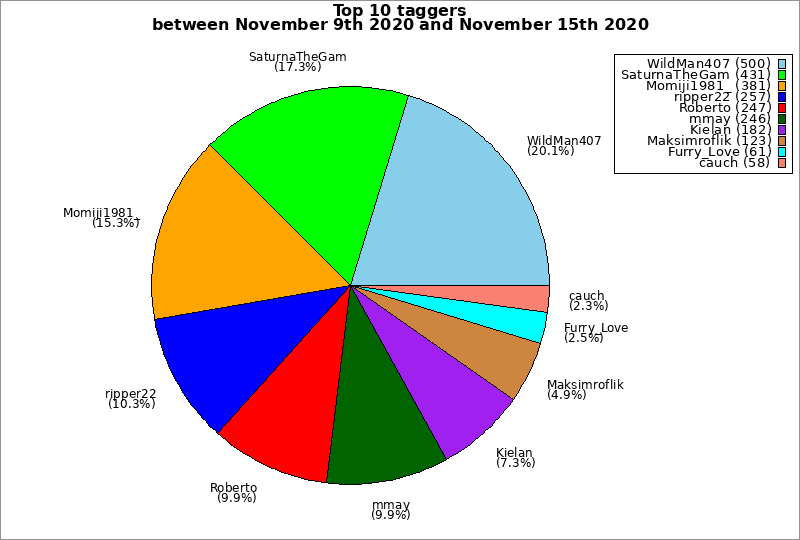 | Top 10 taggers between November 9th 2020 and November 15th 2020 | ||
