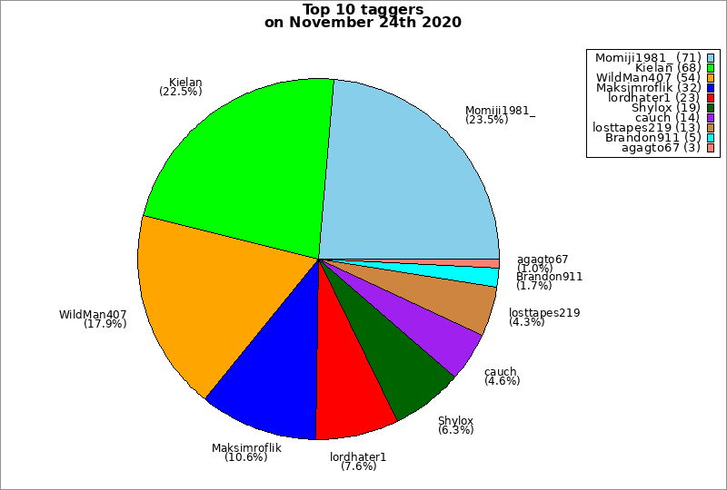 | Top 10 taggers on November 24th 2020 | ||