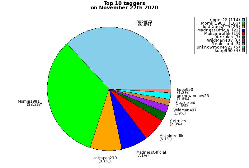 | Top 10 taggers on November 27th 2020 | ||
