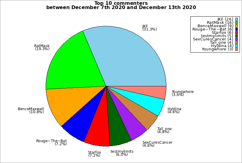 | Top 10 commenters between December 7th 2020 and December 13th 2020 | ||