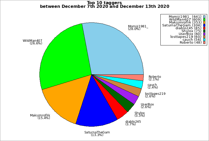 | Top 10 taggers between December 7th 2020 and December 13th 2020 | ||