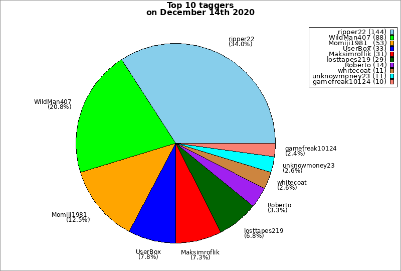 | Top 10 taggers on December 14th 2020 | ||
