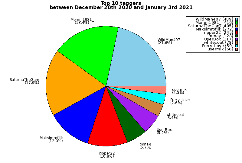 | Top 10 taggers between December 28th 2020 and January 3rd 2021 | ||