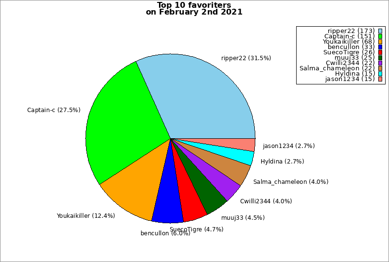 | Top 10 favoriters on February 2nd 2021 | ||