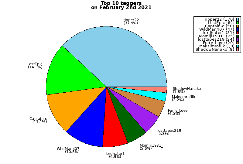 | Top 10 taggers on February 2nd 2021 | ||
