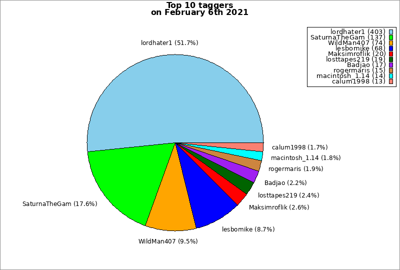 | Top 10 taggers on February 6th 2021 | ||
