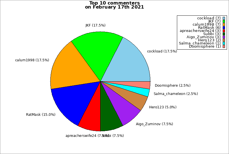 | Top 10 commenters on February 17th 2021 | ||