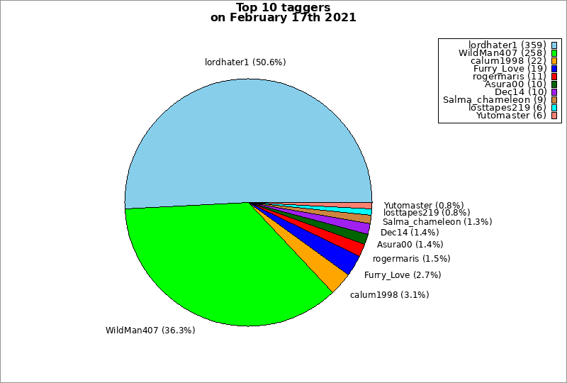 | Top 10 taggers on February 17th 2021 | ||