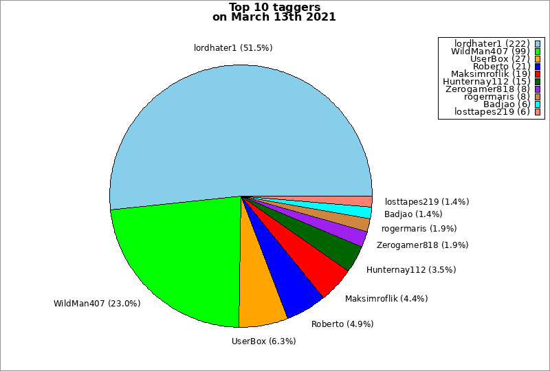 | Top 10 taggers on March 13th 2021 | ||