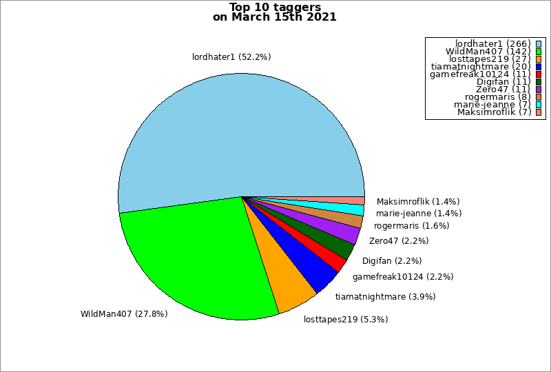 | Top 10 taggers on March 15th 2021 | ||