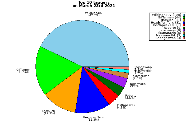 | Top 10 taggers on March 23rd 2021 | ||