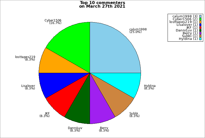 | Top 10 commenters on March 27th 2021 | ||
