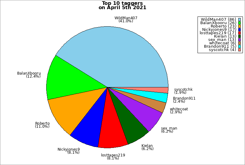 | Top 10 taggers on April 5th 2021 | ||