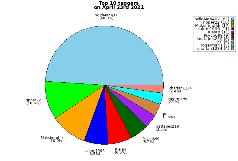 | Top 10 taggers on April 23rd 2021 | ||