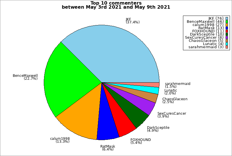| Top 10 commenters between May 3rd 2021 and May 9th 2021 | ||
