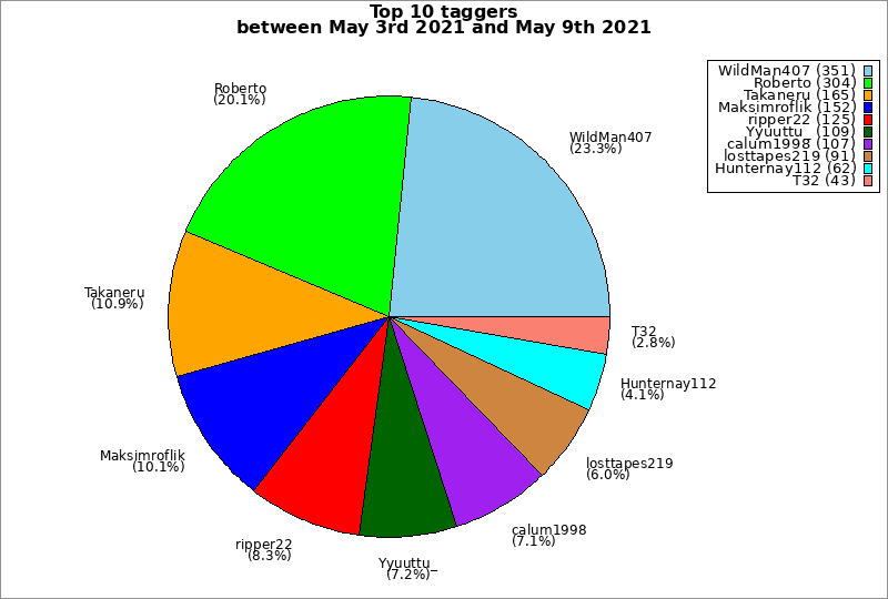 | Top 10 taggers between May 3rd 2021 and May 9th 2021 | ||