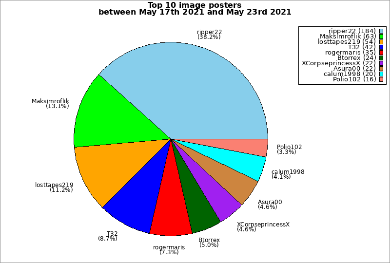 | Top 10 image posters between May 17th 2021 and May 23rd 2021 | ||