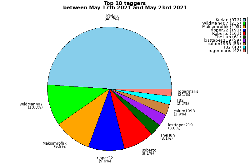 | Top 10 taggers between May 17th 2021 and May 23rd 2021 | ||