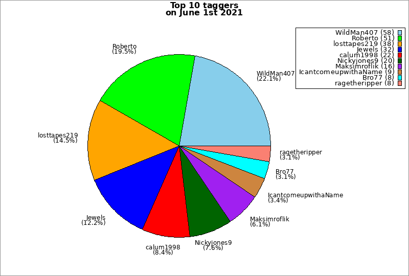 | Top 10 taggers on June 1st 2021 | ||