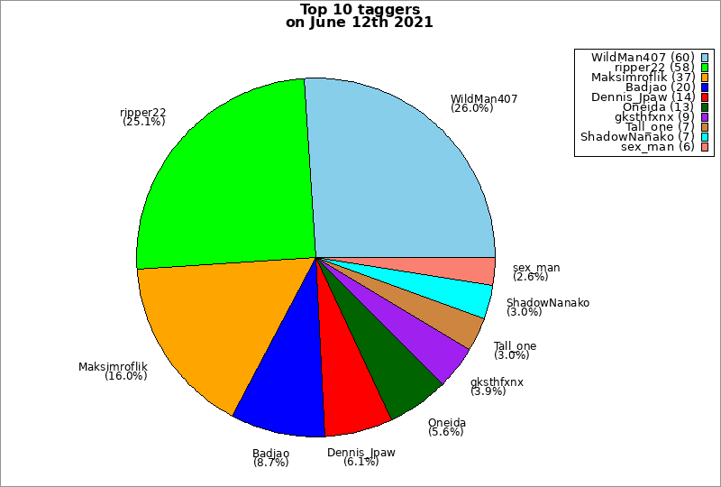 | Top 10 taggers on June 12th 2021 | ||