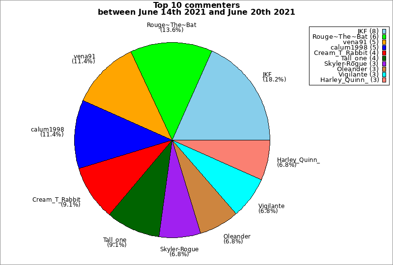 | Top 10 commenters between June 14th 2021 and June 20th 2021 | ||