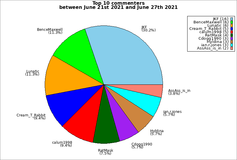 | Top 10 commenters between June 21st 2021 and June 27th 2021 | ||