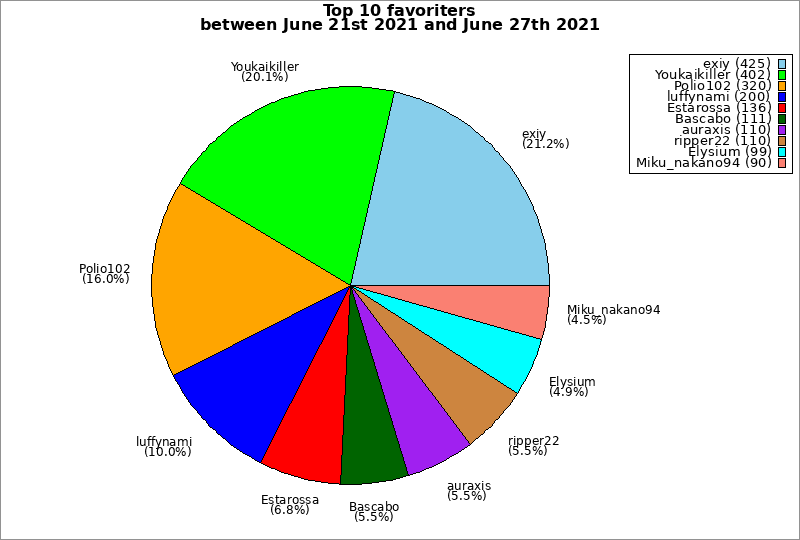 | Top 10 favoriters between June 21st 2021 and June 27th 2021 | ||