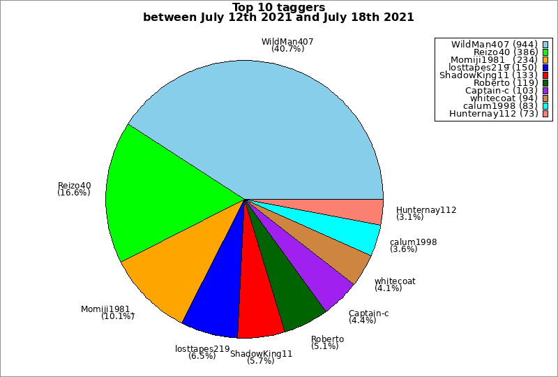 | Top 10 taggers between July 12th 2021 and July 18th 2021 | ||