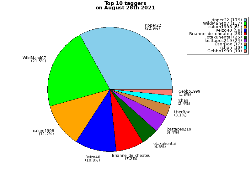 | Top 10 taggers on August 28th 2021 | ||