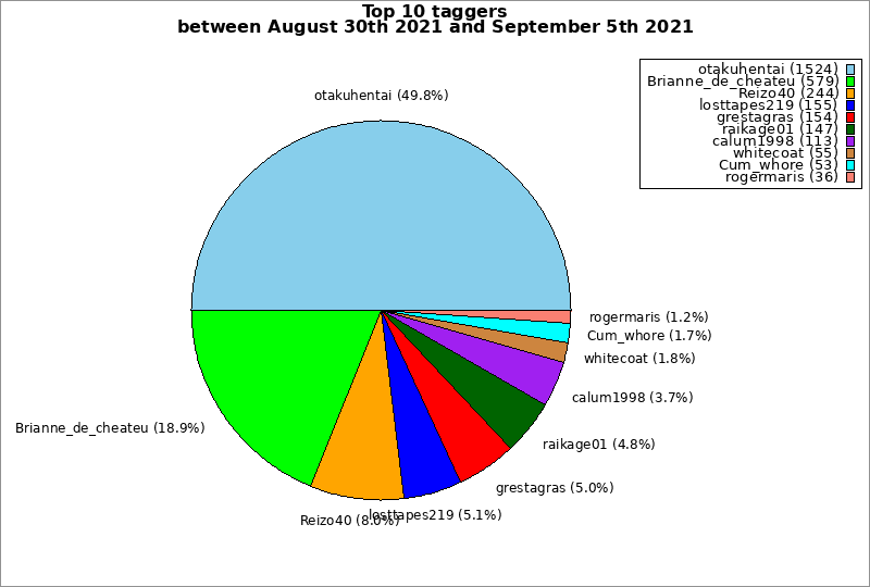 | Top 10 taggers between August 30th 2021 and September 5th 2021 | ||