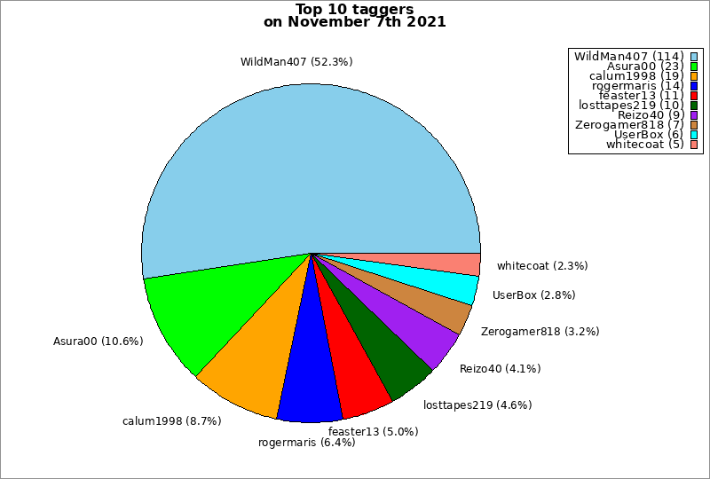 | Top 10 taggers on November 7th 2021 | ||