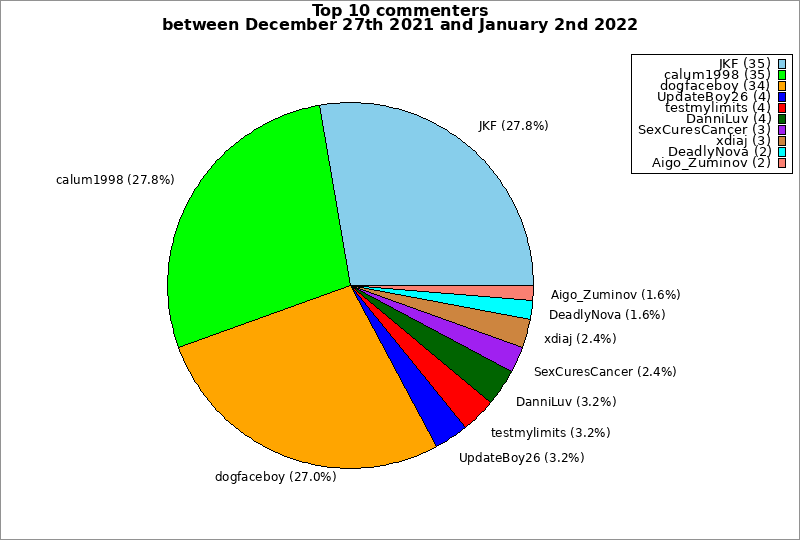 | Top 10 commenters between December 27th 2021 and January 2nd 2022 | ||