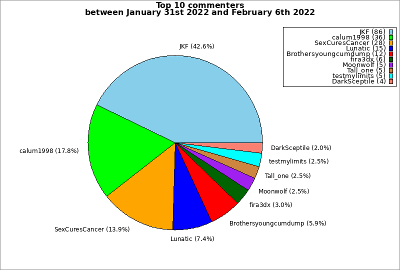 | Top 10 commenters between January 31st 2022 and February 6th 2022 | ||