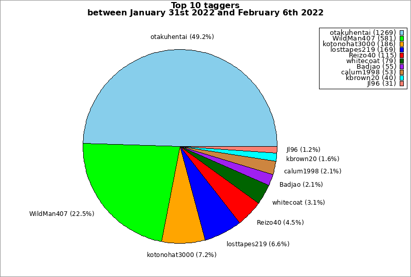 | Top 10 taggers between January 31st 2022 and February 6th 2022 | ||