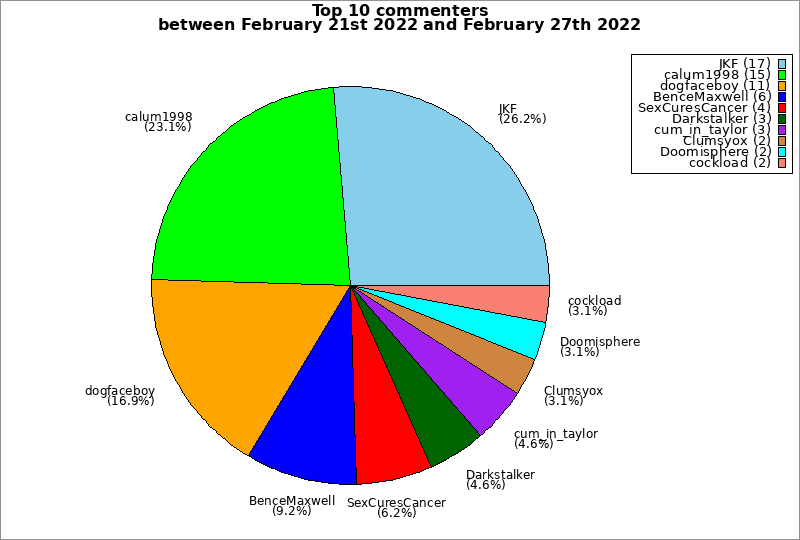 | Top 10 commenters between February 21st 2022 and February 27th 2022 | ||