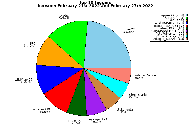 | Top 10 taggers between February 21st 2022 and February 27th 2022 | ||