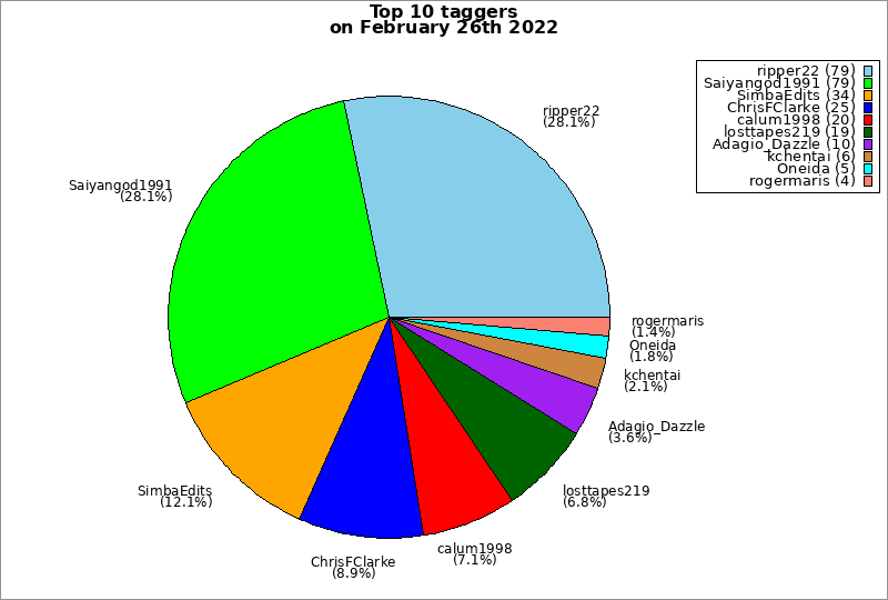 | Top 10 taggers on February 26th 2022 | ||