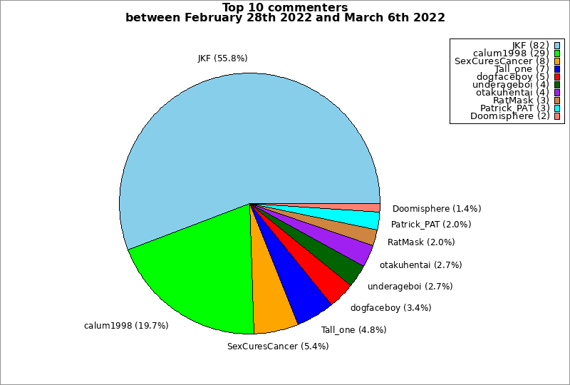 | Top 10 commenters between February 28th 2022 and March 6th 2022 | ||