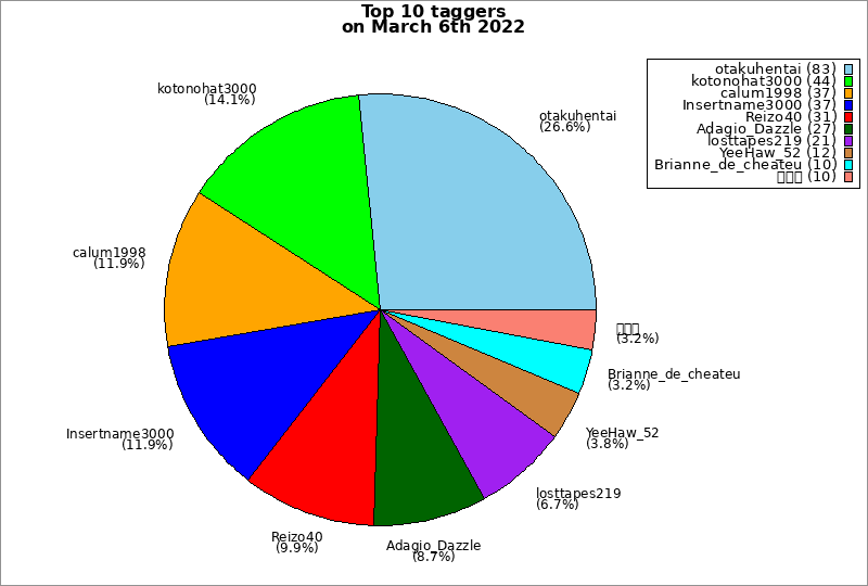 | Top 10 taggers on March 6th 2022 | ||